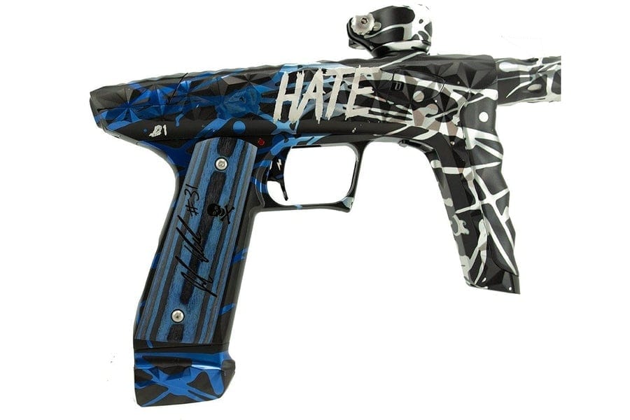 U potpuno mat crnom tijelu s visokosjajnim pljuskom u plavoj (stražnji dio) prema srebrnoj (prednji dio) fade obradi (samo visokosjajni pljusak je fade, tijelo je mat crno). Dolazi s natpisom HATE laserski ugraviranim s obje strane kao na Jacobovom markeru ili bez njega.
